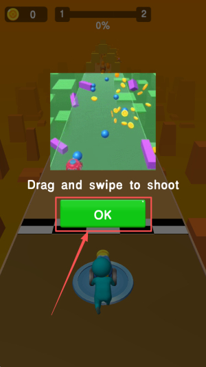 2、接着,按照提示拖动并滑动屏幕进行射击。