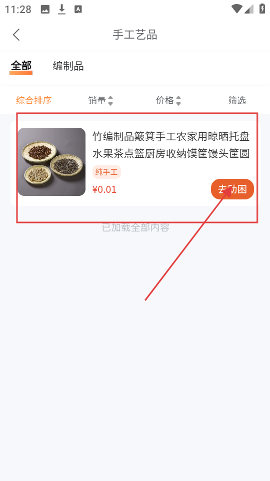 3、进入手工艺品分类,能看到像竹编制品这类商品,选好后点【去助困】,就能参与助困啦。