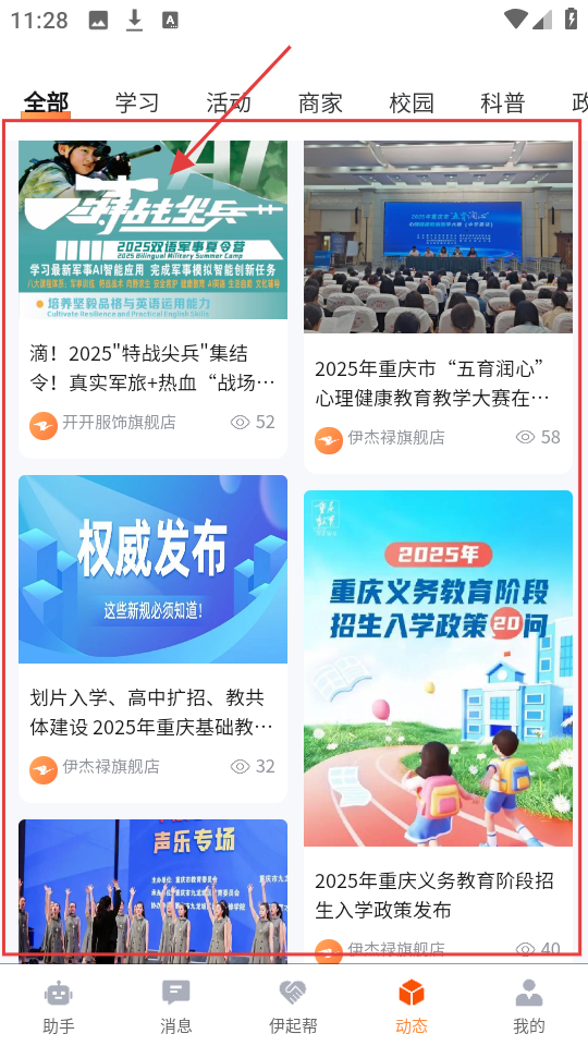 4、动态页面有学习、活动等不同分类内容,能看到好多有趣又有用的信息,没事可以多逛逛。