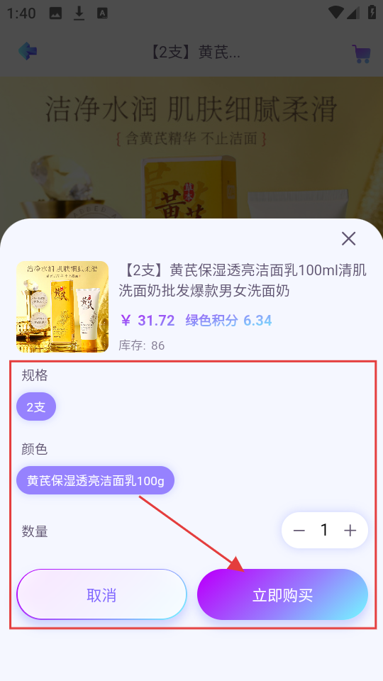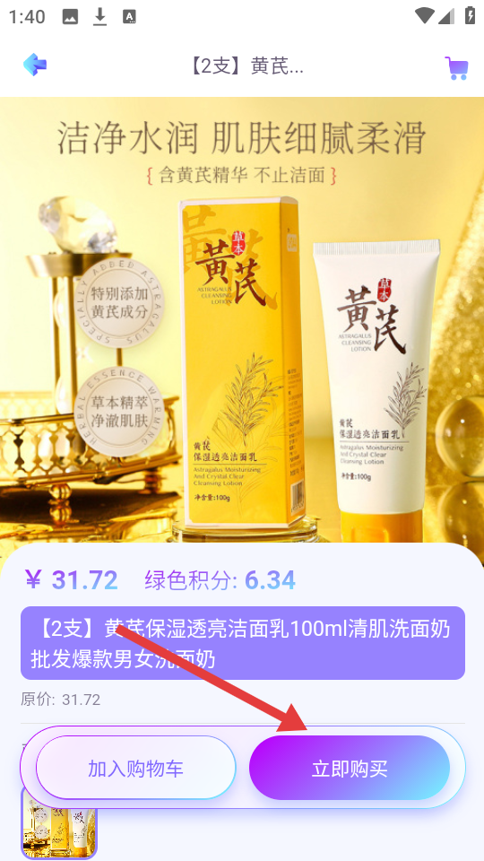 3、进入商品详情页,能看到价格、积分等,想入手就点【立即购买】,超简单。