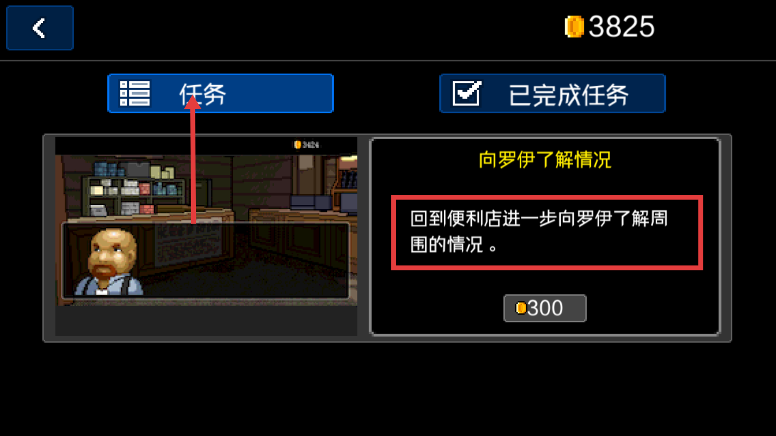 2、在任务界面接取【回到便利店进一步向罗伊了解周围的情况】的任务,按指引前往便利店。
