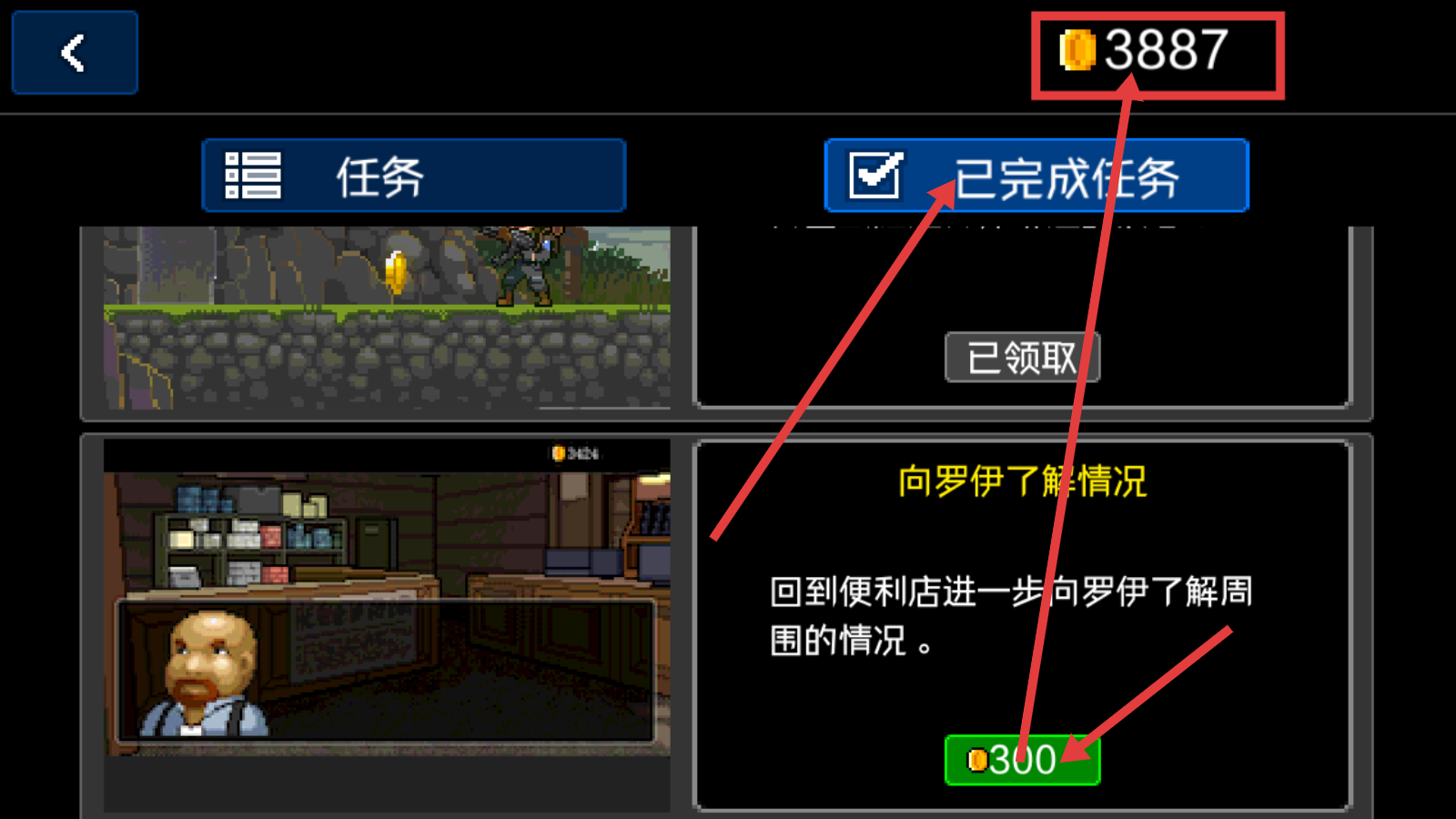 4、完成向罗伊了解情况的任务后,领取【300】金币奖励,金币数量会增长,积累资源用于后续生存。