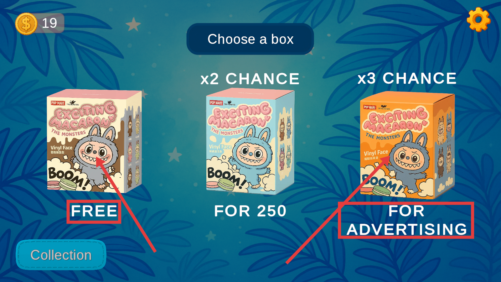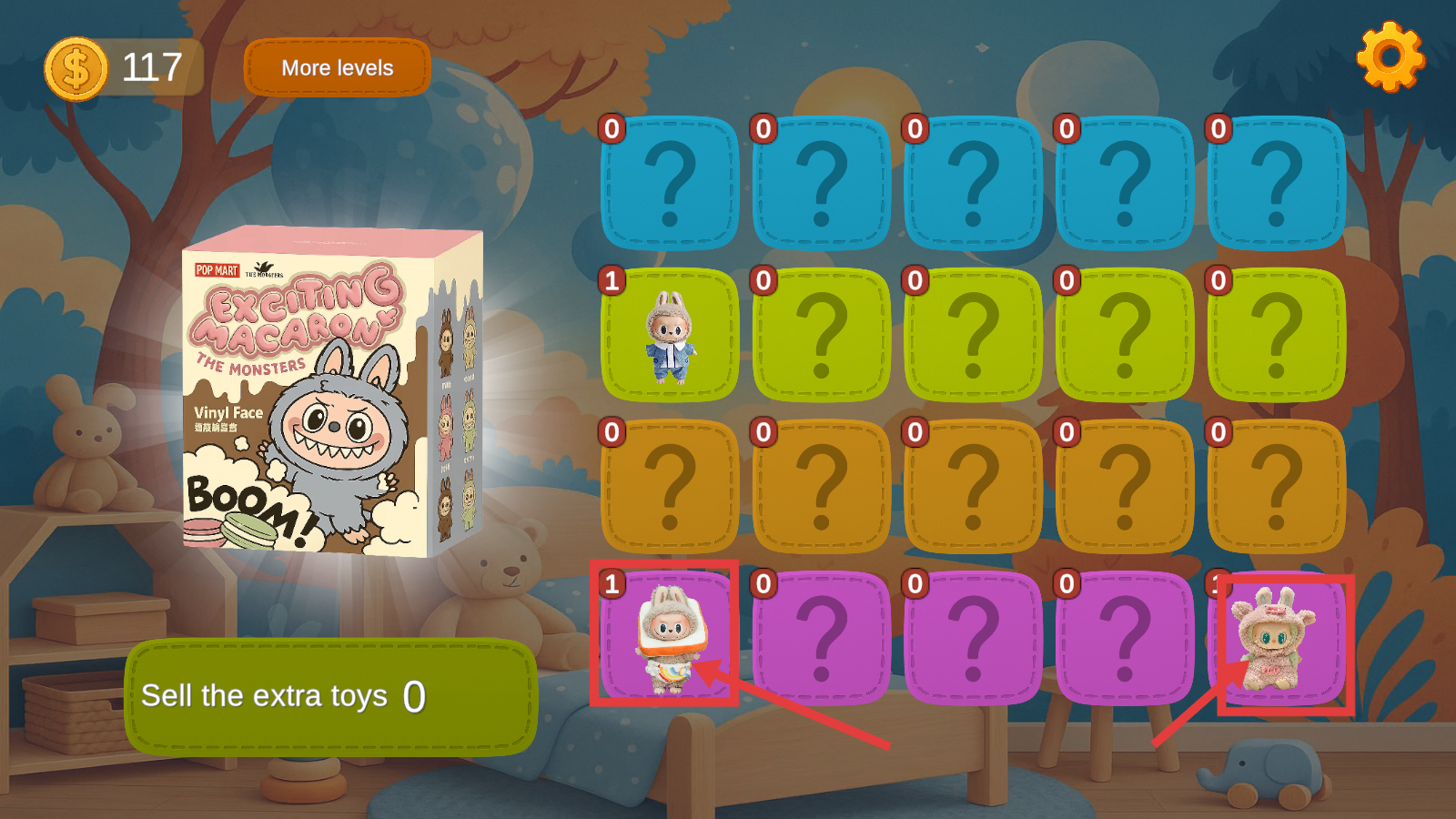 3、持续开启盲盒或进行游戏,能获得不同样式的玩偶,同时再次收集掉落的金币,进一步增加金币数量。