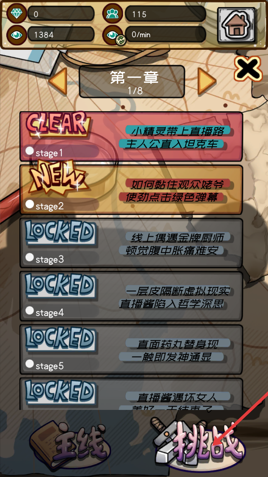 1、在关卡选择界面,挑选可挑战的关卡(如【stage2】),开启新挑战,推进主线剧情的解锁与探索。