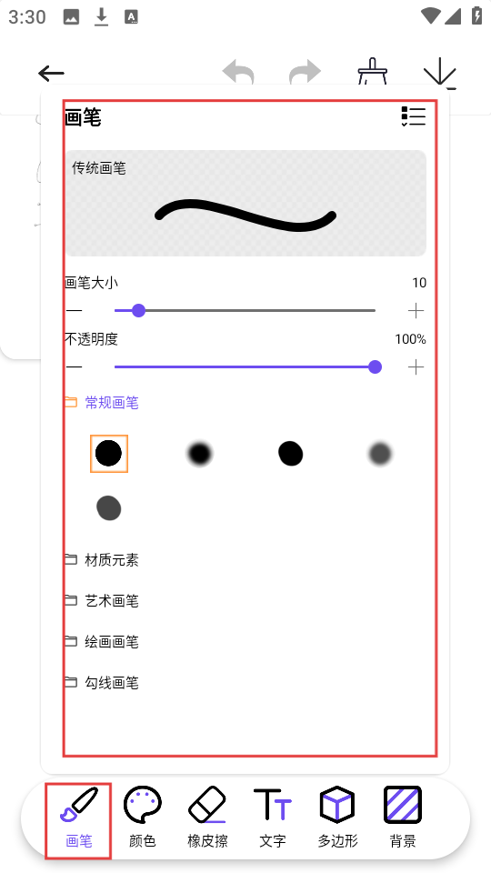 4、画笔设置里能调大小、不透明度,选喜欢的画笔样式,让临摹更顺利。