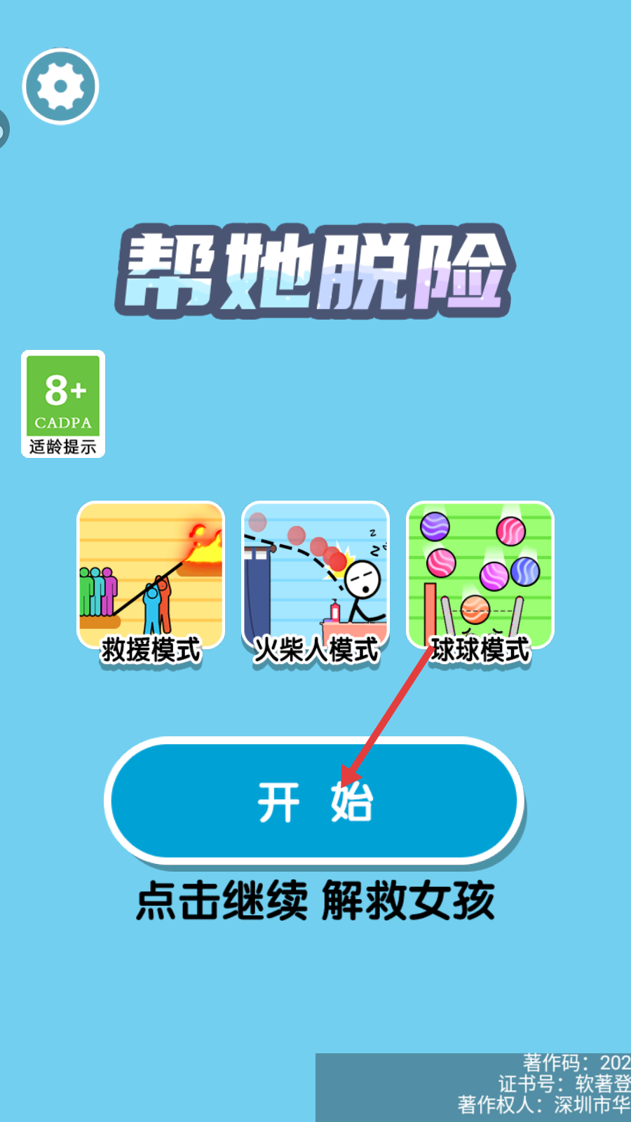 1、进入【帮她脱险】游戏,选择模式后点击【开始】按钮,开启解救挑战,推进关卡进程。