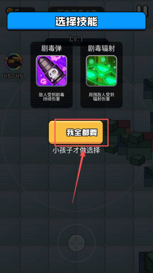 3、然后,在技能选择界面,点击“我全都要”按钮选择所有技能。