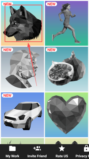 2、接着,选择一个新图案开始游戏,点击其中一个“NEW”图标。
