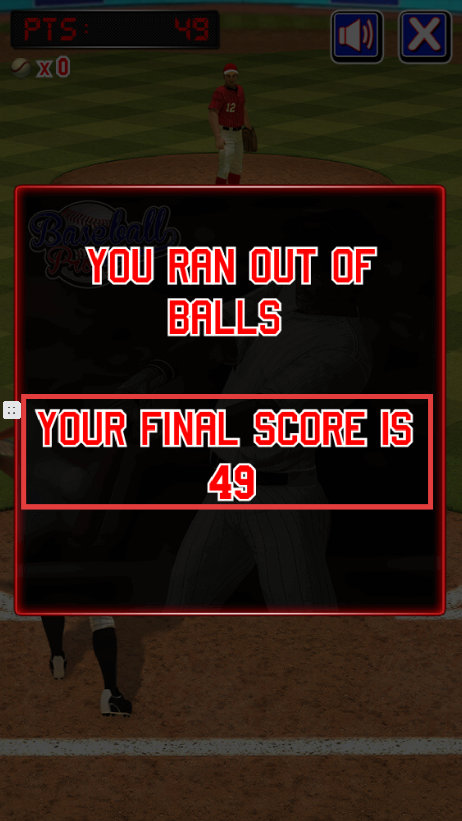 4、当棒球数量用尽时,游戏结束,界面会显示【YOURFINALSCOREIS】及最终分数,可记录后重新挑战提升成绩。