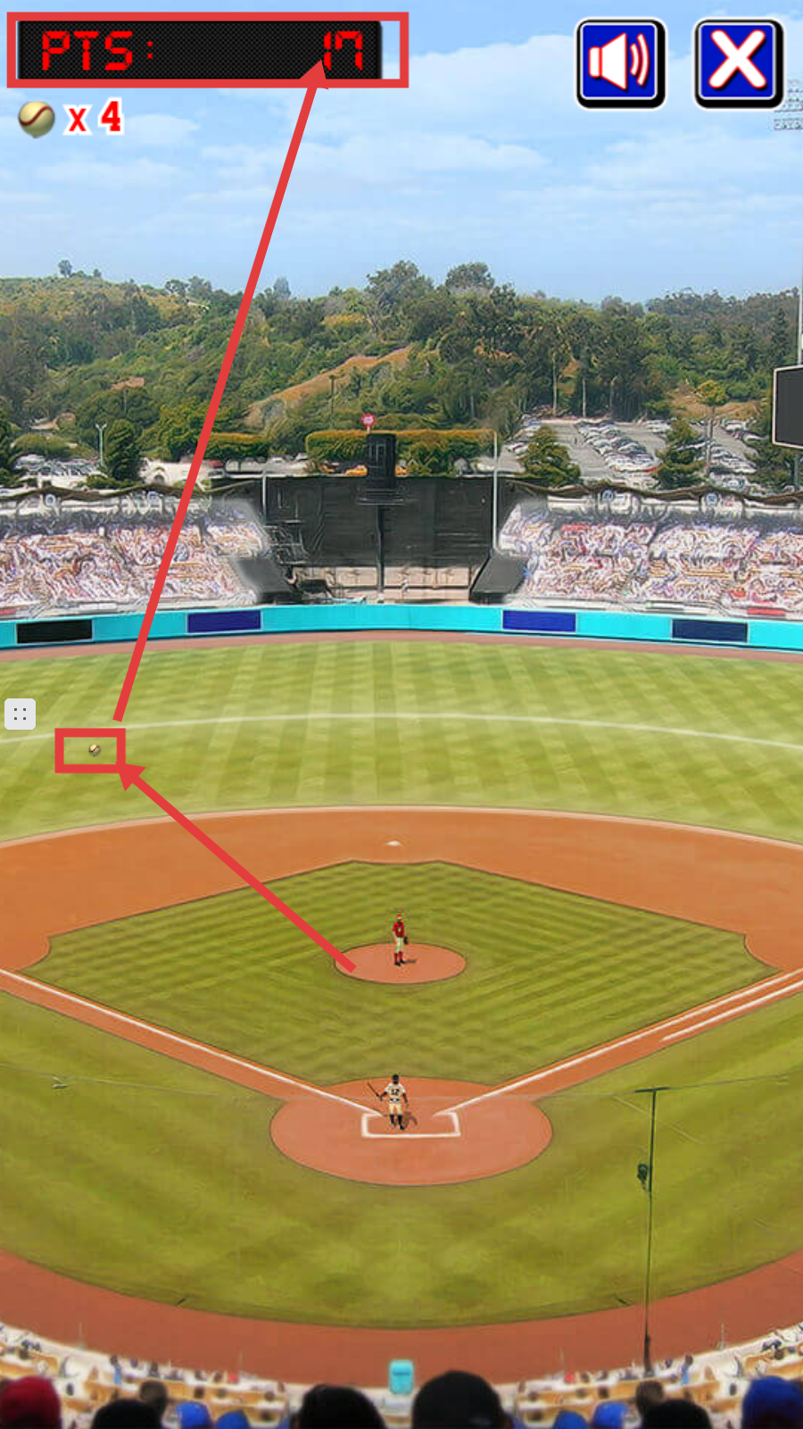 3、击中棒球后,球飞向球场,飞行过程中会累积【PTS】分数,尽量让球飞得更远以获取更高分数。
