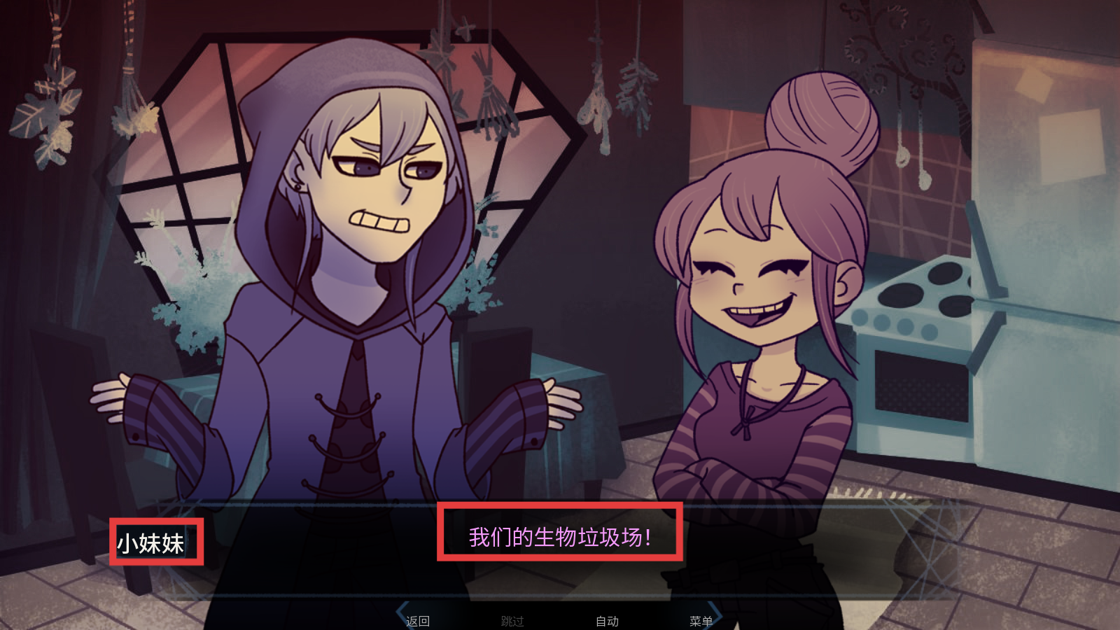 3、与角色【小妹妹】对话时,关注她“我们的生物垃圾场!”的回应,通过对话交互来推动剧情发展。