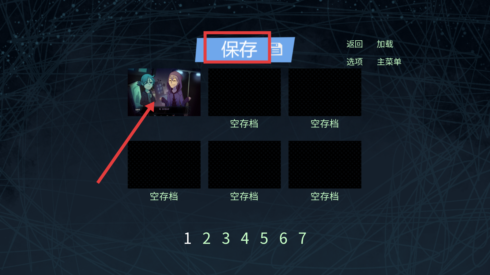 4、剧情推进到一定阶段后,进入存档界面,点击带有游戏画面的存档格,再选择【保存】,就能记录当前的游戏进度。