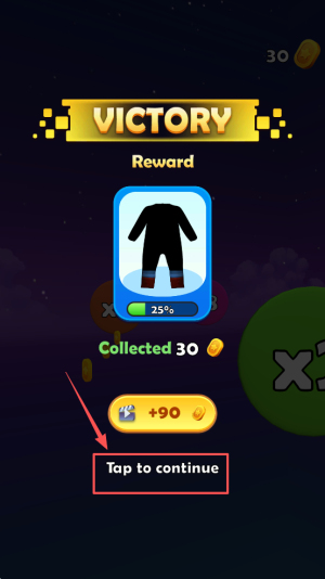 4、完成关卡点击“Tap to continue”。领取奖励,继续游戏。