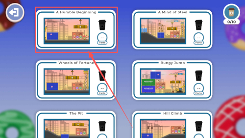 2、观察场景布局:查看关卡内场景元素与甜甜圈位置,分析物理规律(如重力、碰撞),构思解谜思路。