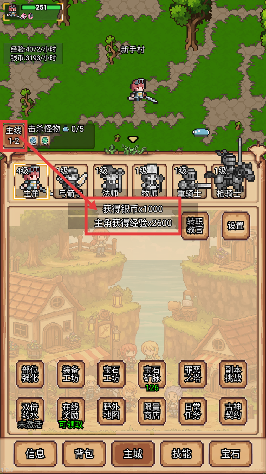 4、完成主线1-2任务,可获得【银币x1000】与【主角经验x2600】,积累资源用于角色养成,继续推进后续主线关卡。