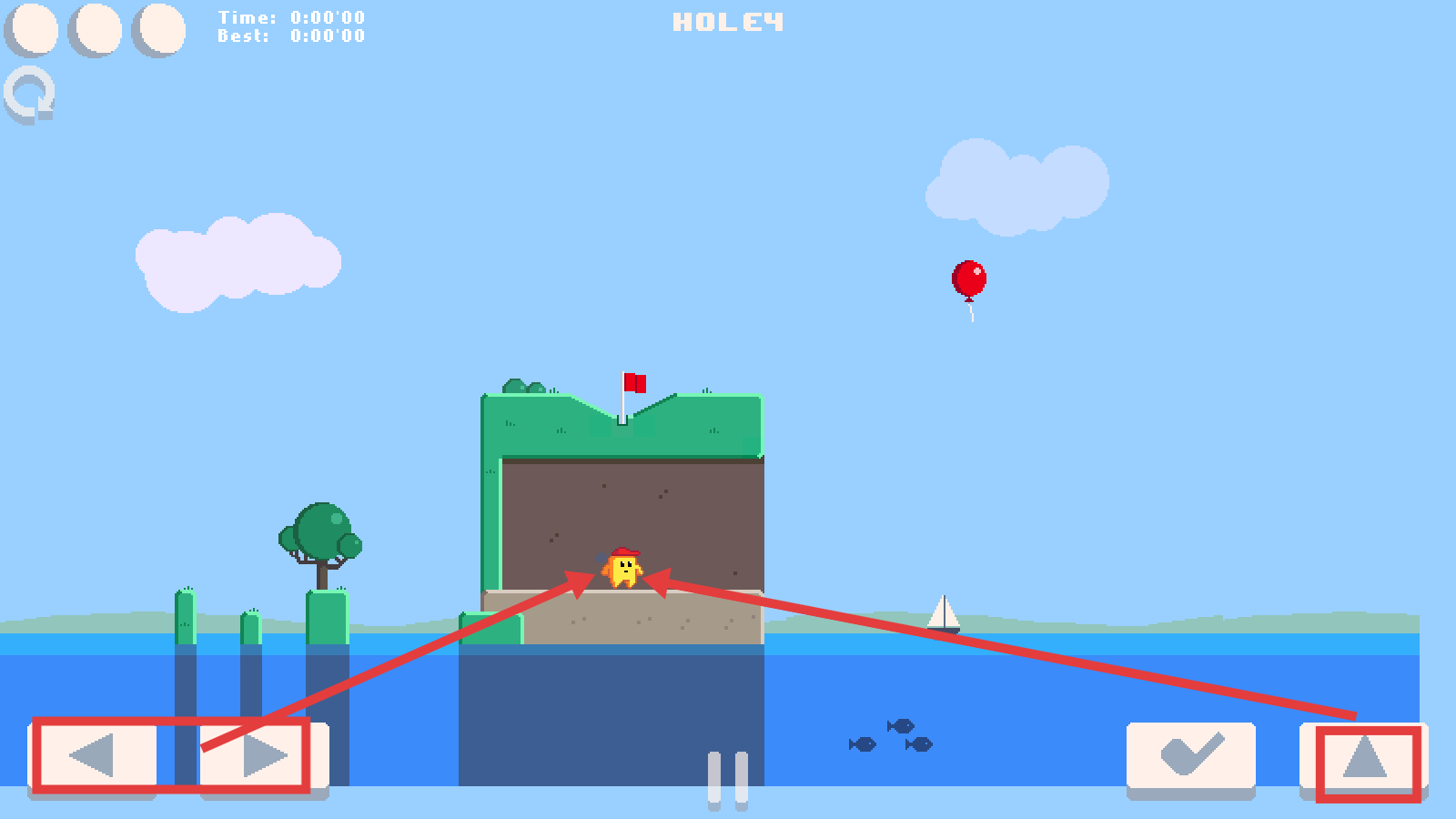 3、调整好角度后,点击右侧带对勾的按钮发射高尔夫,尝试让高尔夫到达【洞口】,同时可挑战戳破空中的气球。