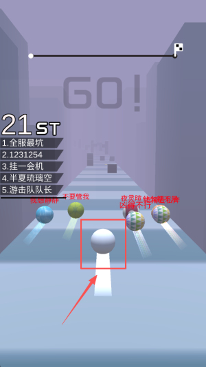 3、参与竞技比拼:在球球跑酷竞赛中,操控球球全力冲刺,与对手比速度,争取成为最快抵达终点者。