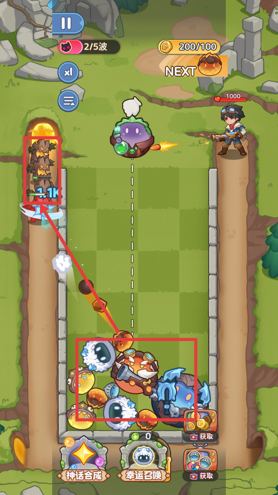 3、到2/5波时,合理搭配多种作战单位,可以将相同的【圆球】合成更高级的防御塔,释放技能高效对抗敌人。