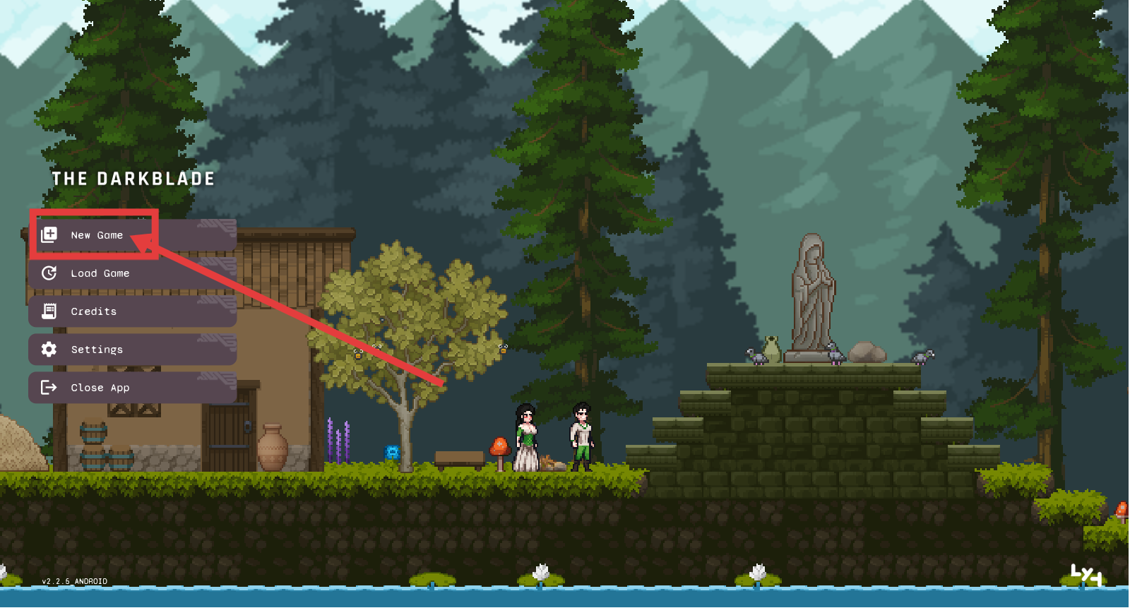1、进入《THEDARKBLADE》游戏,点击【NewGame】开始新游戏,开启冒险旅程。