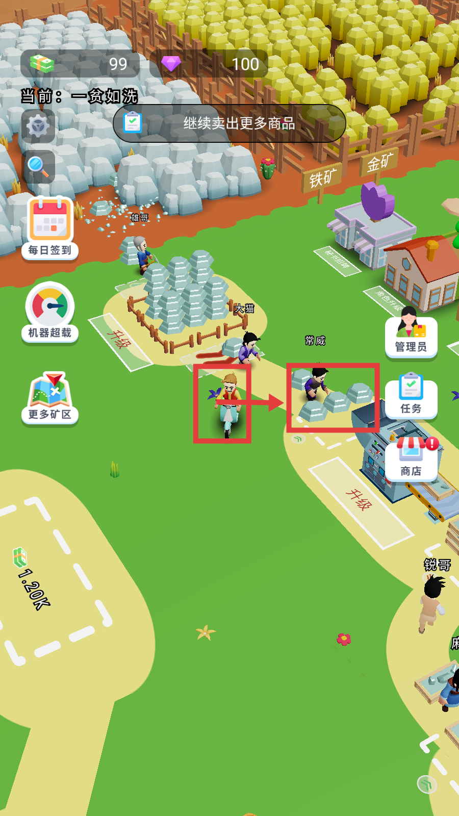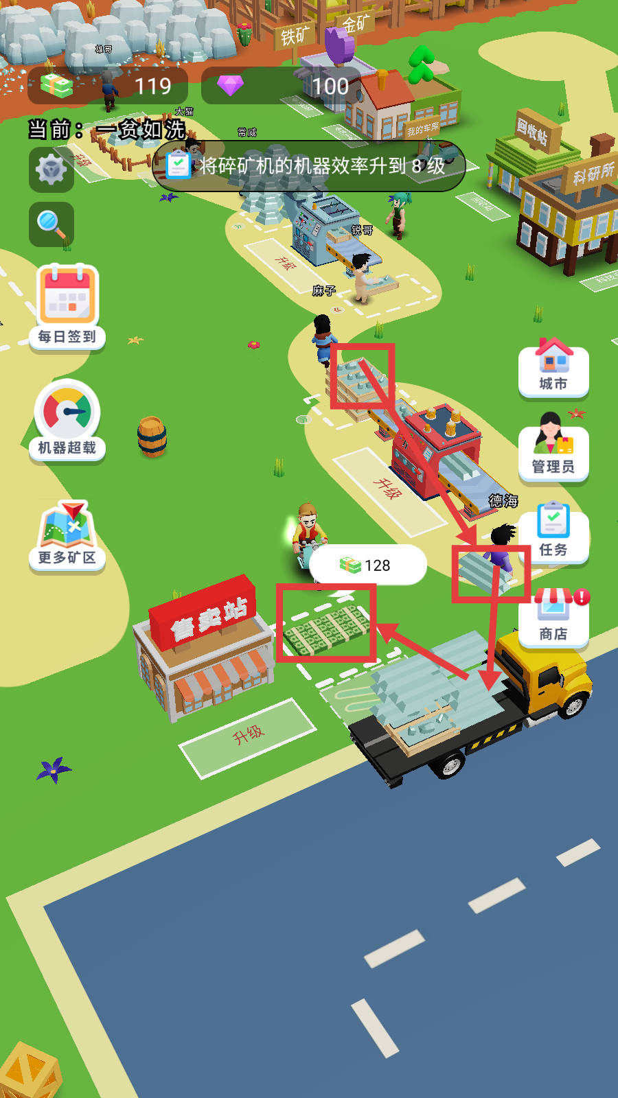 3、加工完成后,将矿石运到售卖站,或用卡车向外运输,完成交易获取金币资源。