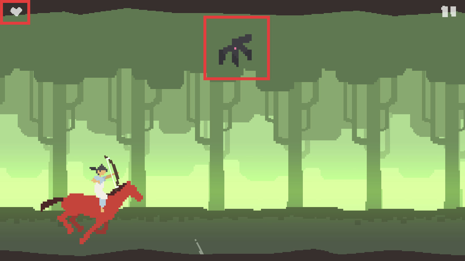 1、骑马探索时,留意上方【黑色飞行敌人】,提前准备用弓箭应对,同时关注左上角生命值。