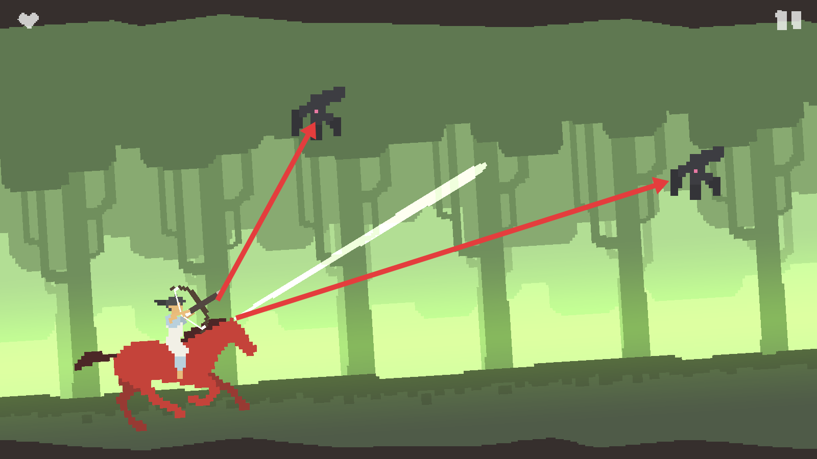 2、遇到多个【黑色飞行敌人】时,瞄准它们射箭,利用弓箭攻击范围,尽可能同时击中多个目标。