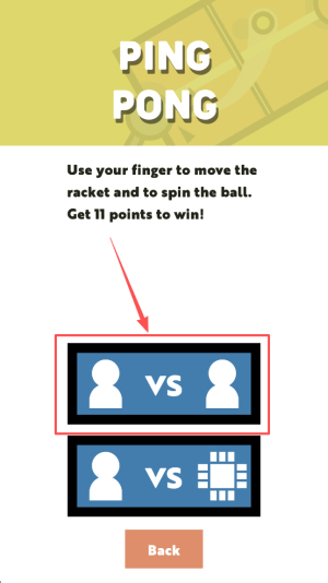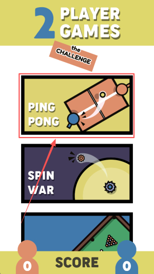 1、首先,选择“PING PONG”或“SPIN WAR”游戏模式开始游戏。