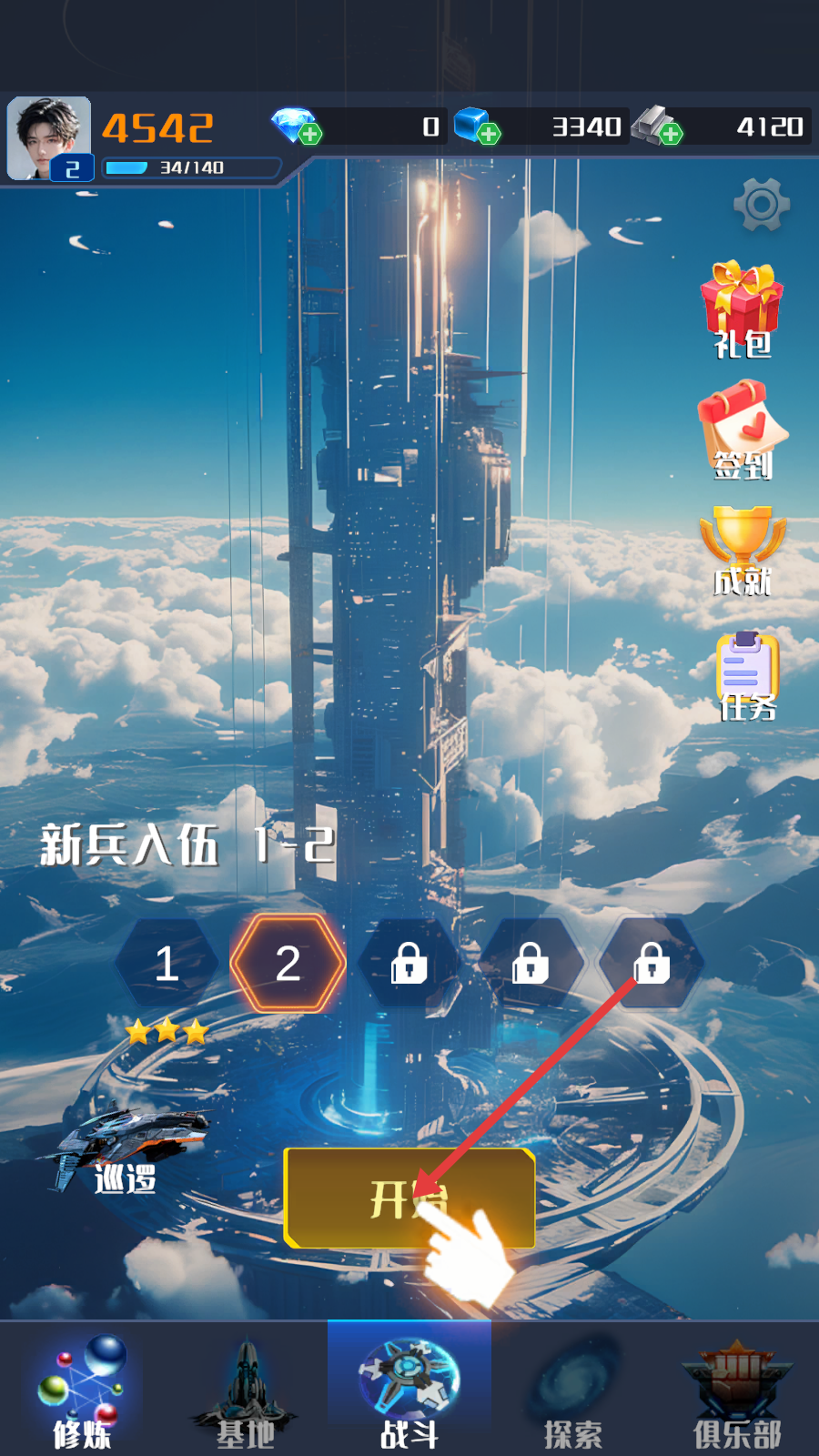 1、在【新兵入伍-1-2】关卡界面,点击黄色【开始】按钮,即可进入该关卡开启战斗。