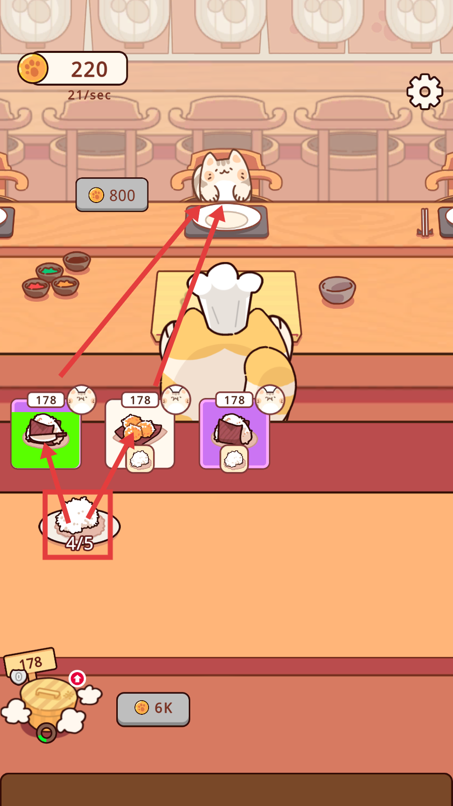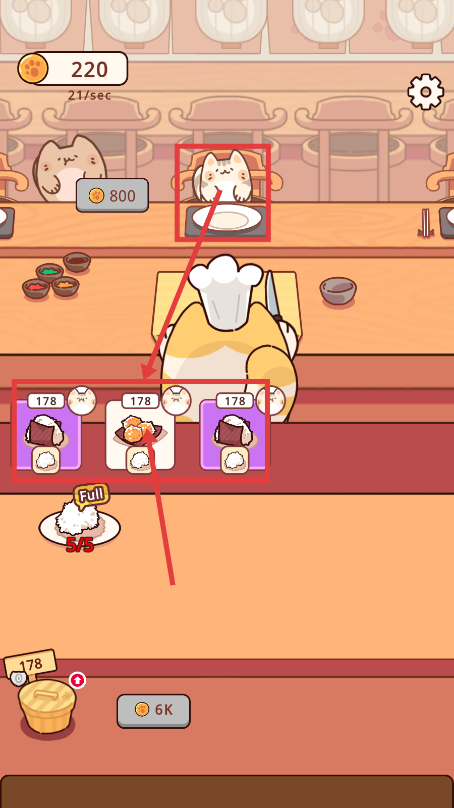 1、观察顾客猫咪的空餐盘,从下方标有【178】的料理中挑选,为顾客准备对应食物。