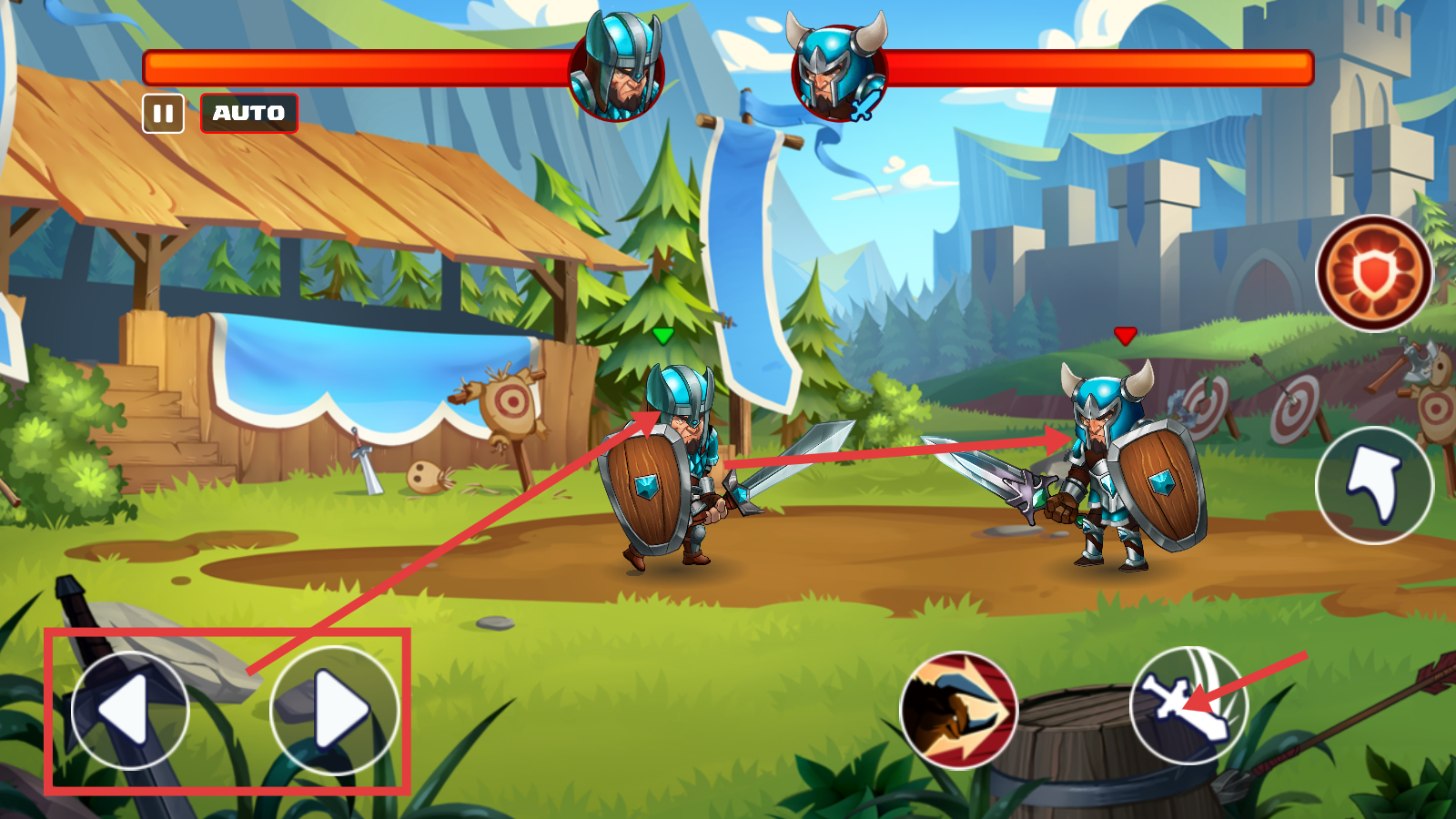 2、战斗时,操控左侧左右方向键移动角色,点击右侧攻击按钮,向敌人发起进攻。