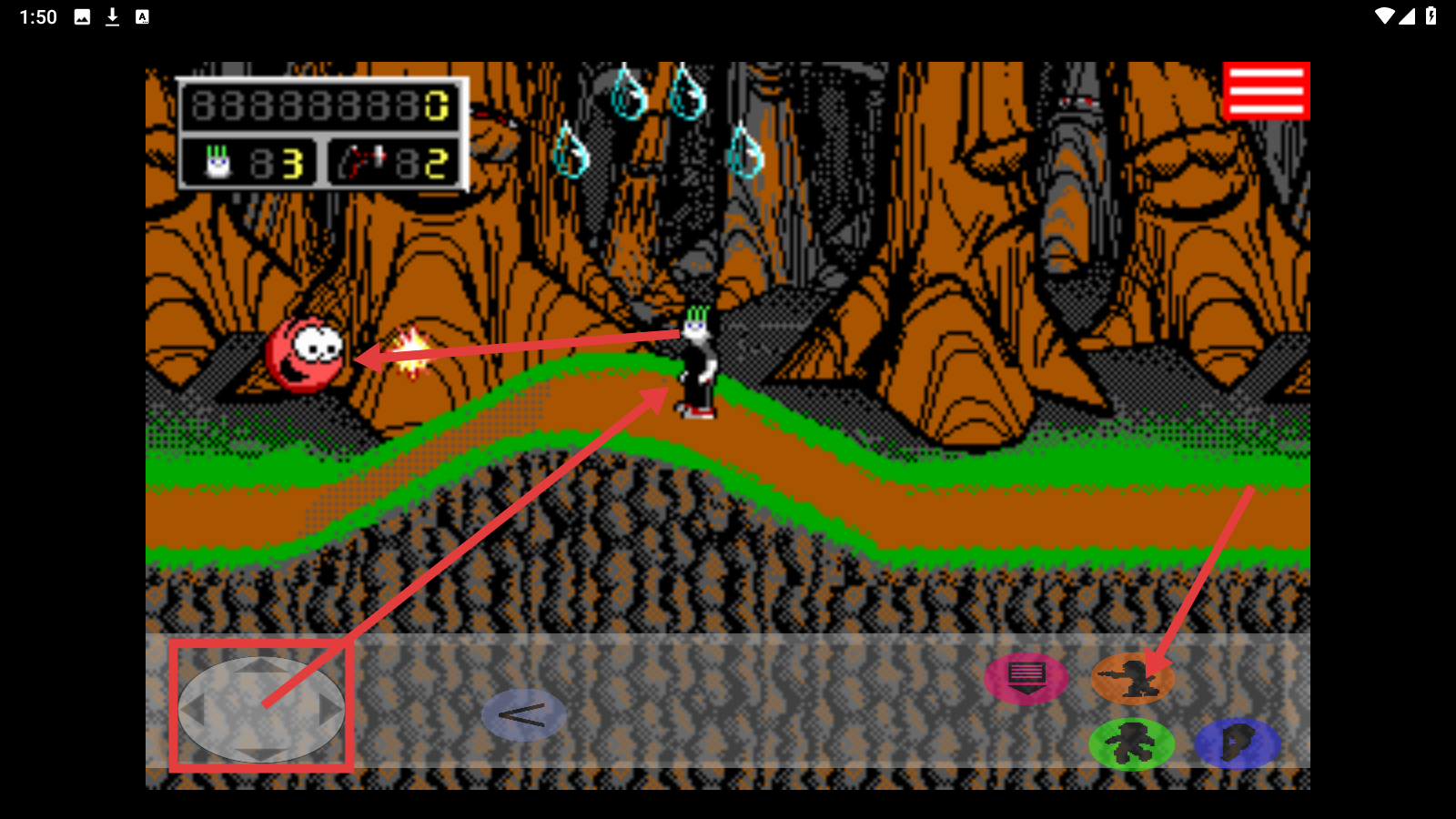 2、借助左下角方向按钮移动角色,遇到红色敌人时,点击右侧攻击类按钮发起进攻。
