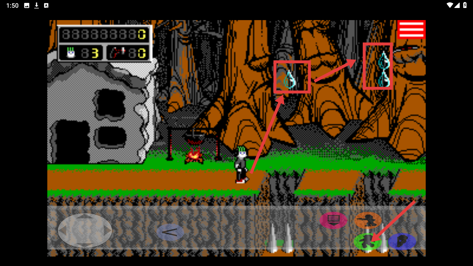 3、积极收集场景中悬挂的水滴状道具,同时使用移动相关按钮探索不同区域,获取资源。