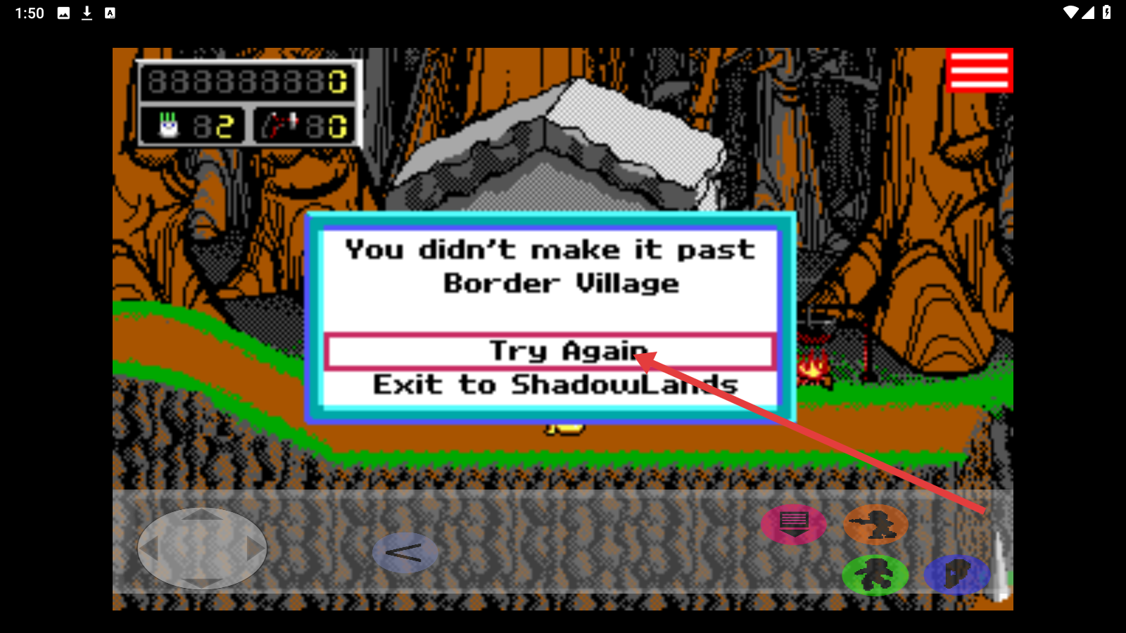 4、若出现“You-didn’t-make-it-past-Border-Village”提示,点击【Try-Again】按钮重新挑战该关卡。