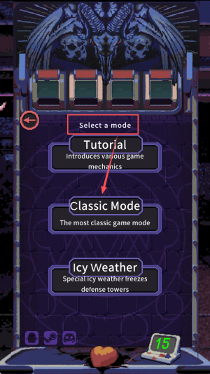 3、如何选择游戏模式?在主菜单点击“Select a mode”,可选“Tutorial”学习玩法、“Classic Mode”体验传统塔防,或挑战“Icy Weather”应对冻结效果。