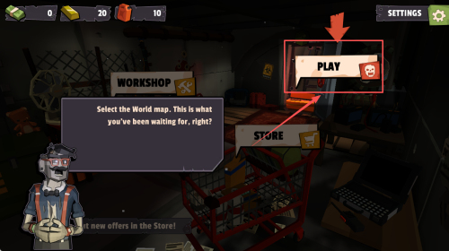 4、如何开始游戏?装备完武器后,点击主界面的“PLAY”按钮,开始游戏挑战。