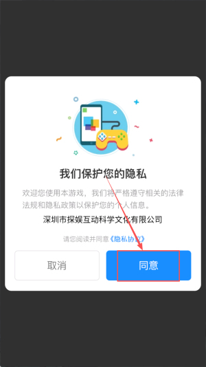 1、首先,阅读隐私条款并点击“同意”进入游戏。