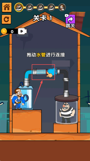 1、聚焦 “管道连接 + 解谜闯关”:核心是 “连水管、避坏人、救伙伴”,特色在于 “高益智 + 轻趣味”,区别于普通休闲游戏。