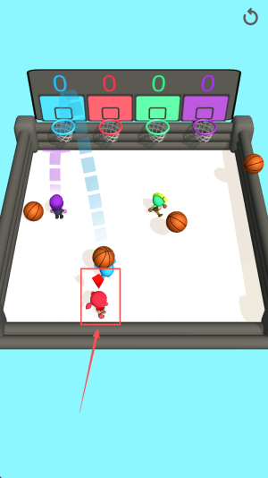 1、开启篮球对决:进入游戏熟悉规则,明确 “限时投球、争夺桂冠” 目标,选择对应颜色小人,加入 4 人对战。