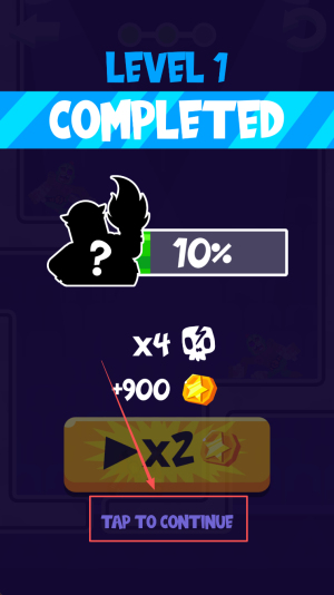 4、最后,领取+900奖励并点击“TAP TO CONTINUE”进入下一关。