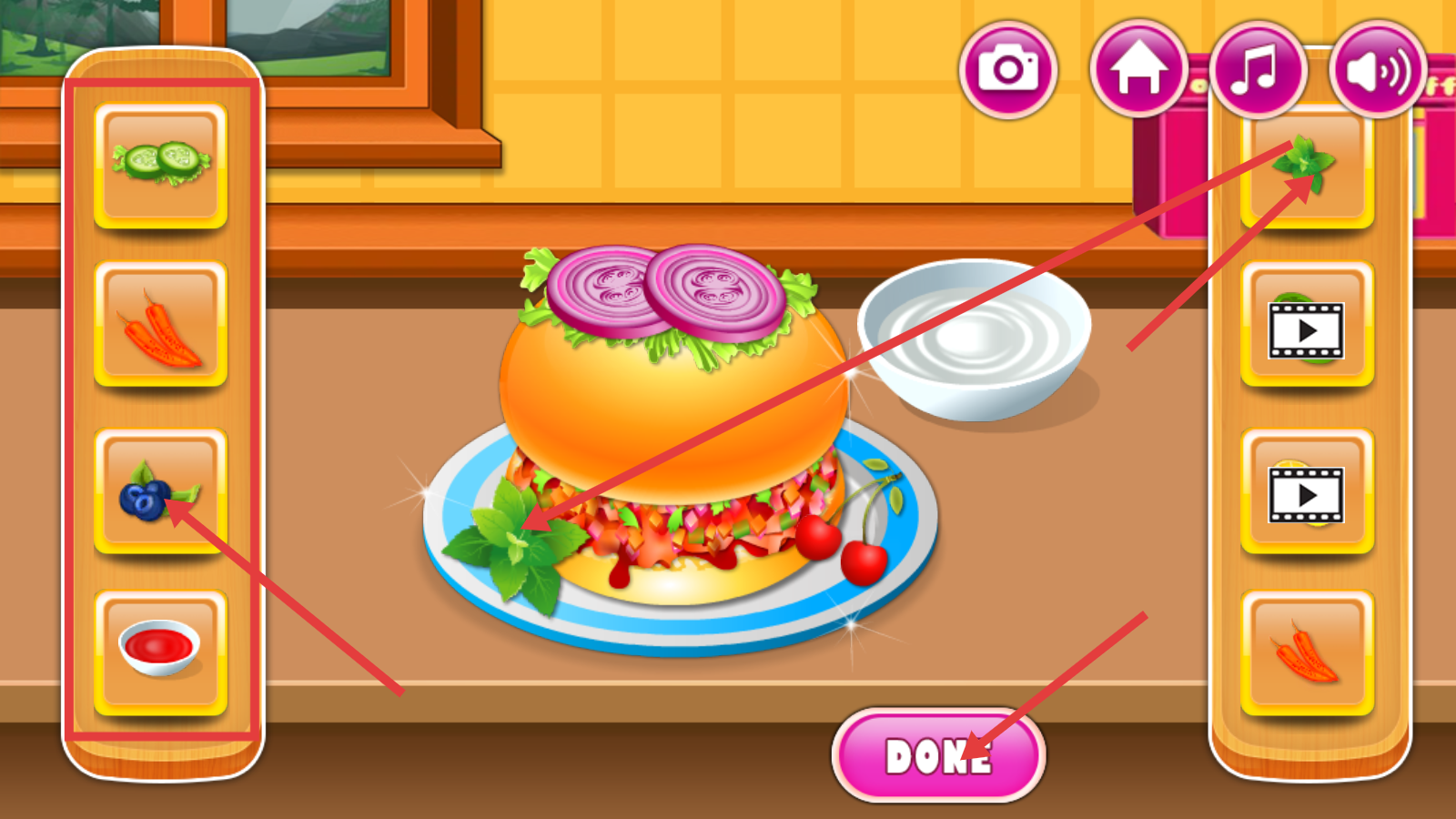 3、装饰摆盘完成:使用水果等食材进行最后装饰摆盘,提升食物美观度,获得更高评价与收益。