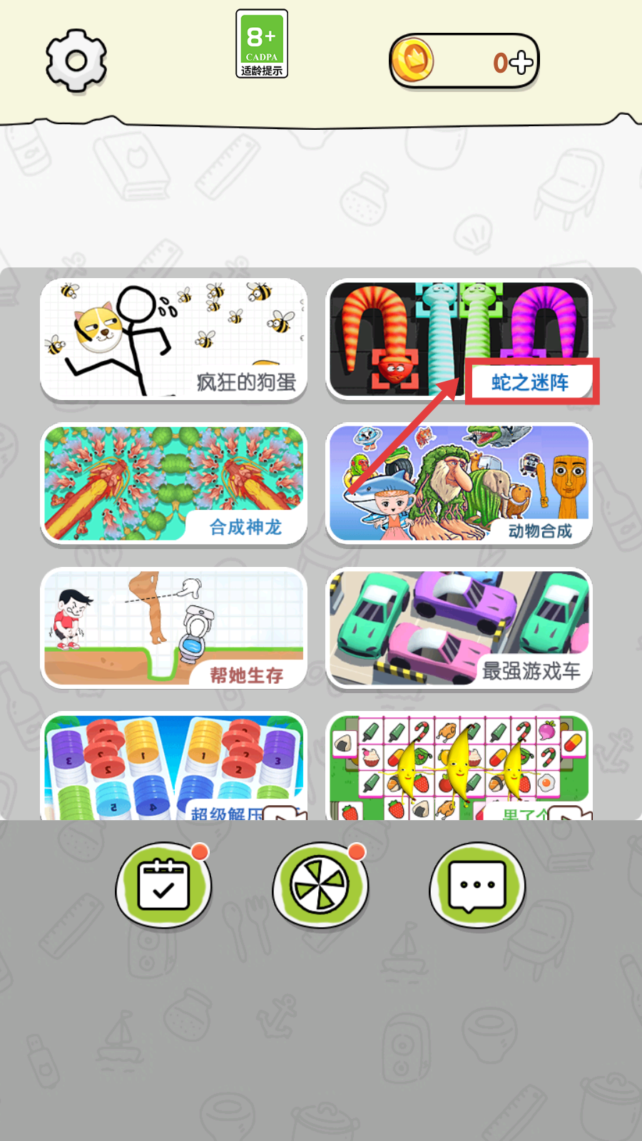 1、在游戏选择界面,找到【蛇之迷阵】关卡并点击,进入蛇的移动挑战关卡。