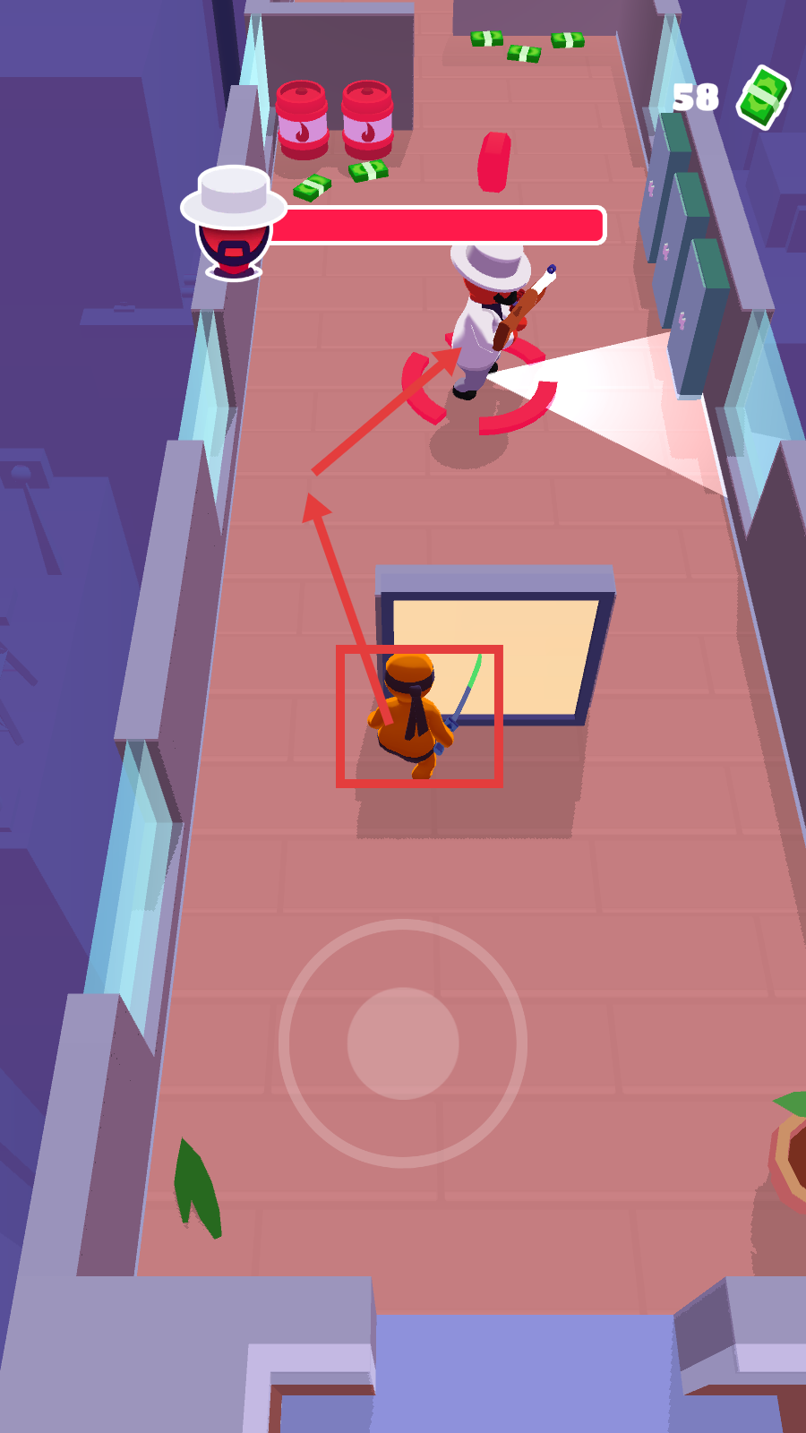 2、遭遇戴白帽的持枪敌人时,利用场景中的掩体,绕到敌人侧面或后方发起攻击,削减其血量。