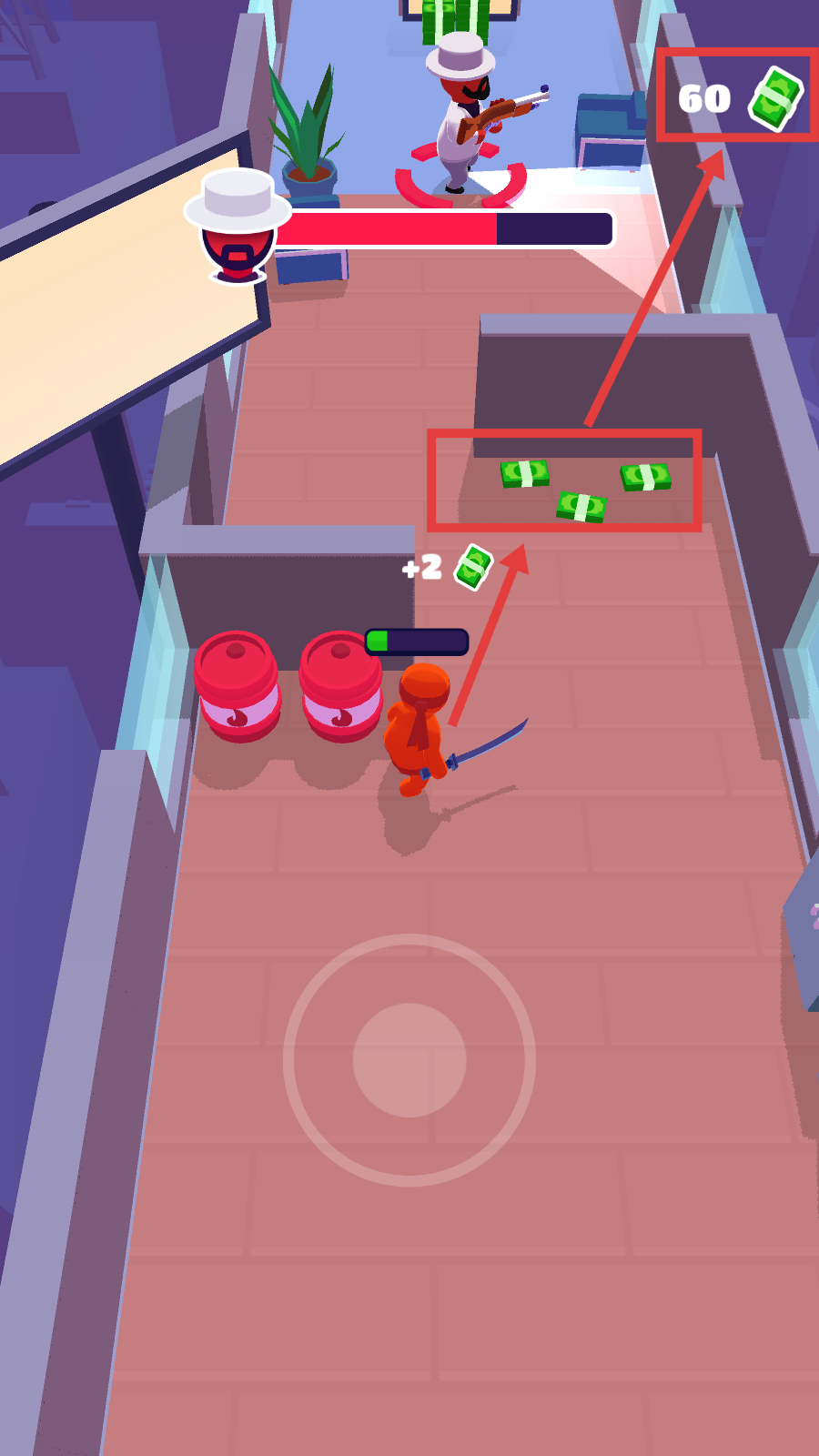 3、击败敌人后,及时收集场景中散落的钞票,让右上角的钞票数量不断增加,积累游戏资源。