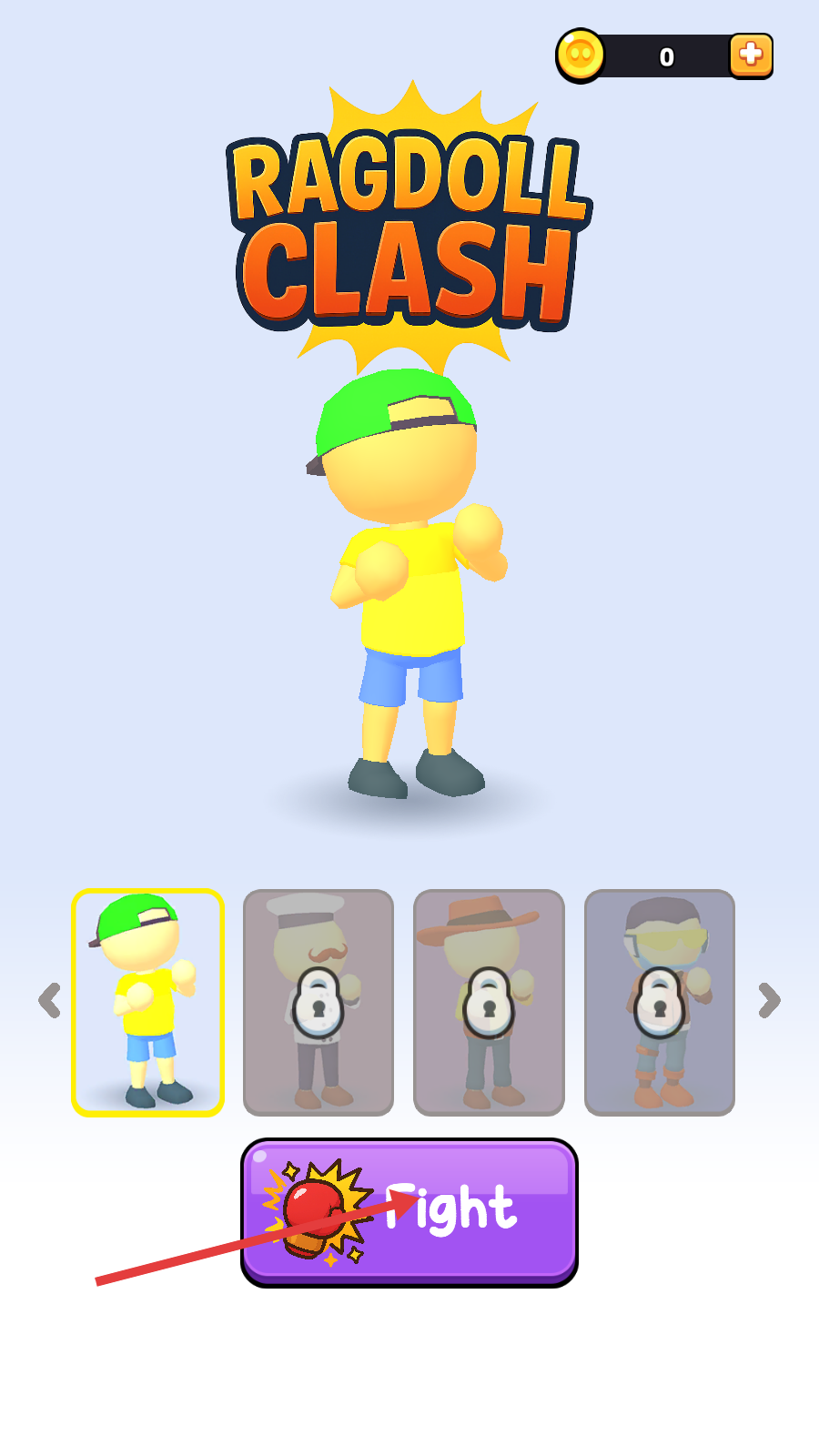 1、进入【Ragdoll-Clash】后,选择可使用的角色,点击紫色的【Fight】按钮,开启战斗对局。