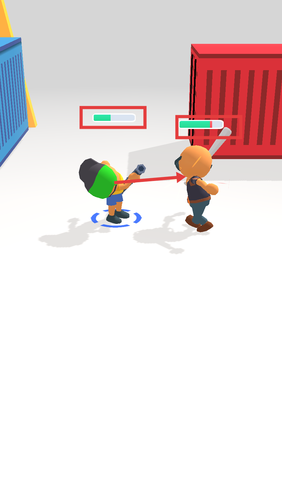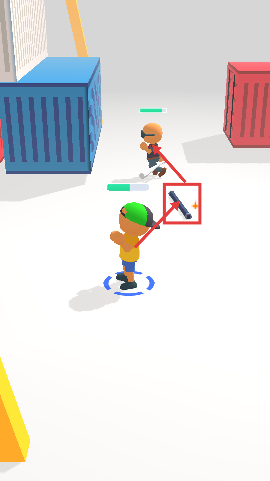 3、用拾取的武器攻击敌人,观察双方血条变化,持续输出直到敌人血条耗尽,争取获胜。