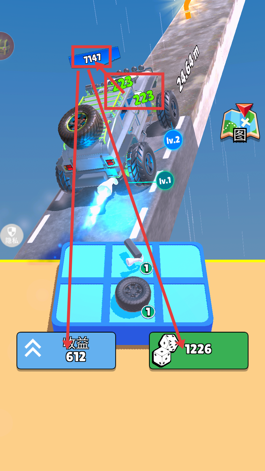 4、车辆行驶时,持续合并升级部件,可提升车辆的数值,同时收益和骰子数值会大幅增加,为后续部件升级提供更多资源。