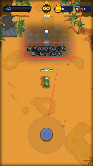 1、如何启动战车?按住屏幕移动手指,即可开动战车前进。