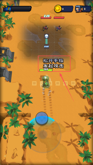 2、如何攻击敌人?松开手指,即可让战车发起攻击。
