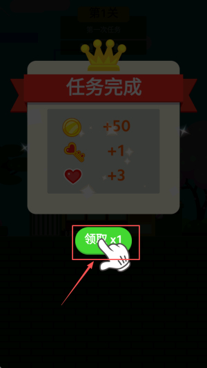 4、如何领取奖励?任务完成后,点击“领取 x1”按钮,领取金币、钥匙和生命值奖励。