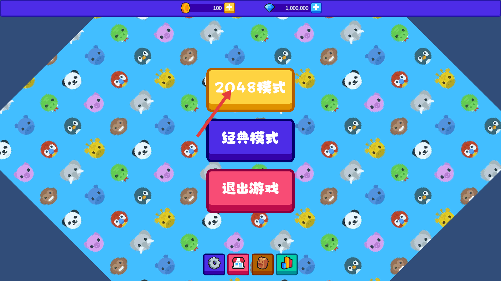 1、点击【2048模式】进入游戏,背景布满动物头像,开启数字方块合并的挑战之旅。
